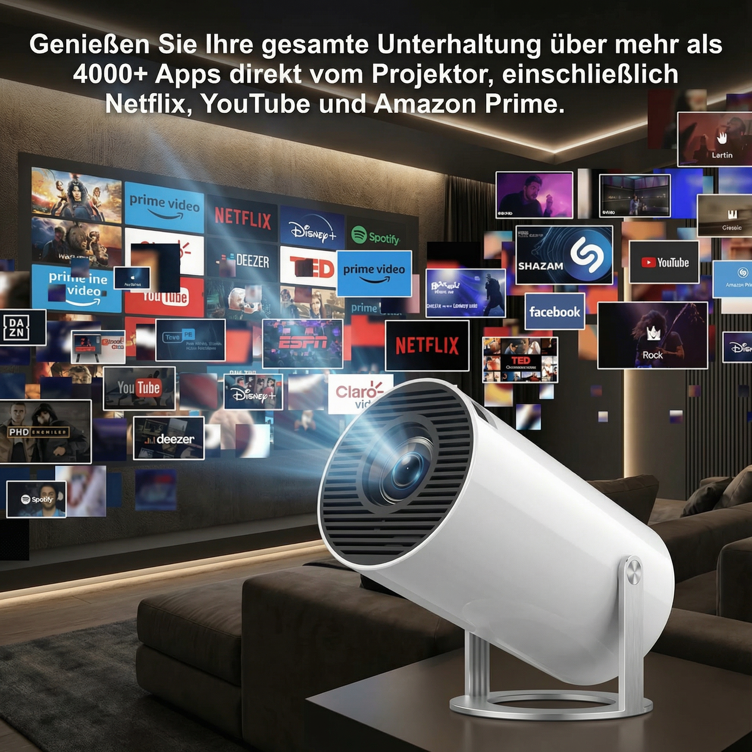 Ja! Der Projektor unterstützt über 4000 Apps , darunter Netflix, YouTube und alle Ihre Lieblings-Streamingdienste. So können Sie Filme, Serien und Inhalte streamen wie auf einem Smart-TV.